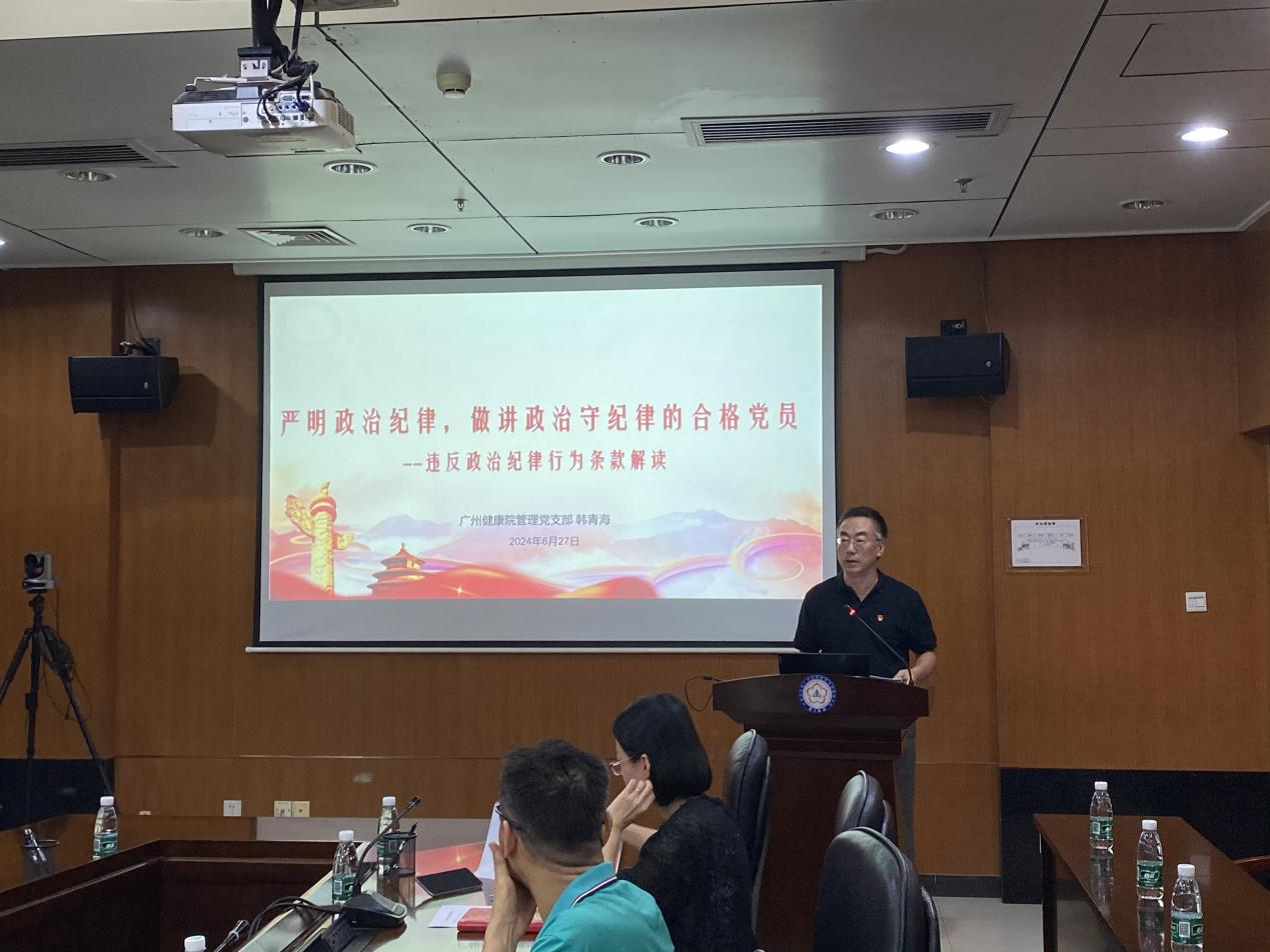 為深入學(xué)習(xí)貫徹習(xí)近平總書記關(guān)于黨紀(jì)學(xué)習(xí)教育的重要講話和重要指示精神,增強(qiáng)支部全體黨員及干部的紀(jì)律意識(shí),筑牢拒腐防變思想防線,6月27日,管理黨支部召開黨員大會(huì)暨黨支部書記講紀(jì)律黨課報(bào)告會(huì)。