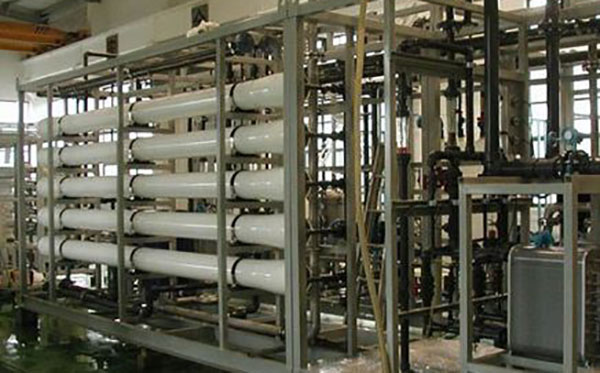 3、原水→增壓泵→砂過濾器→炭過濾器→軟化器→精密過濾器→中間水箱→一級反滲透高壓泵→一級反滲透系統(tǒng)→RO水箱→二級反滲透高壓泵→二級RO水箱→增壓泵→EDI裝置→去離子水箱→去離子水泵→拋光混床→終端精密過濾→紫外線殺菌→用水點(水質可以達到18MΩ.cm以上即0.055μs/㎝以下)