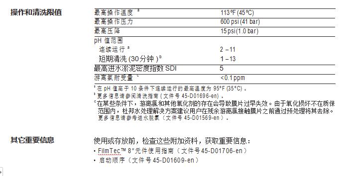 FilmTec™ BW30XFRLE-400/34i 具有以下特點: