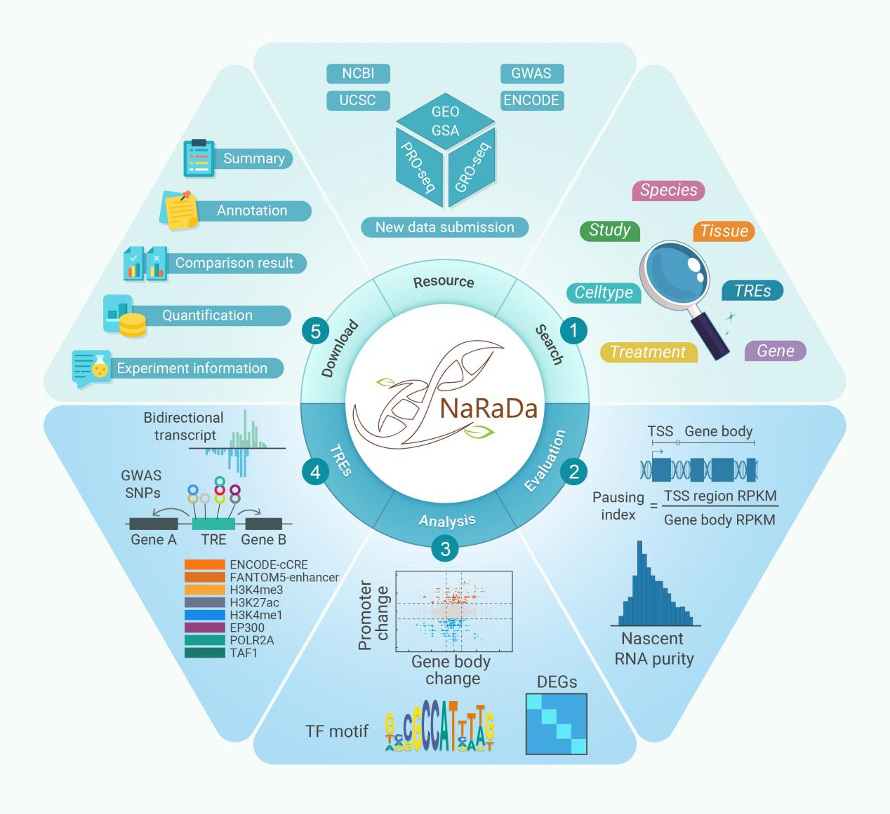 近日,中國科學(xué)院廣州生物醫(yī)藥與健康研究院鮑習(xí)琛團(tuán)隊(duì)在The Innovation Life發(fā)表了題為“NaRaDa: A comprehensive nascent RNA database”的文章,構(gòu)建了綜合性的新生RNA數(shù)據(jù)庫NaRaDa(http://www.narada.bio)。