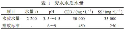 該企業(yè)廢水主要來自于粗餾塔酒糟廢水、精餾塔余餾水等廢水,廢水水質(zhì)和水量如表1所示。設(shè)計出水水質(zhì)須達到當?shù)爻鞘形鬯幚韽S接管標準。