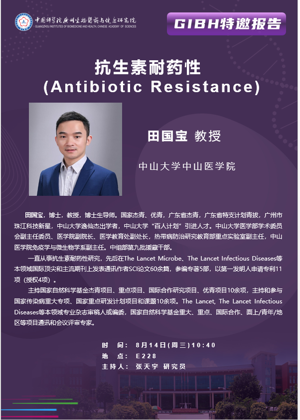 2024年8月14日特邀報(bào)告:抗生素耐藥性 (Antibiotic Resistance)