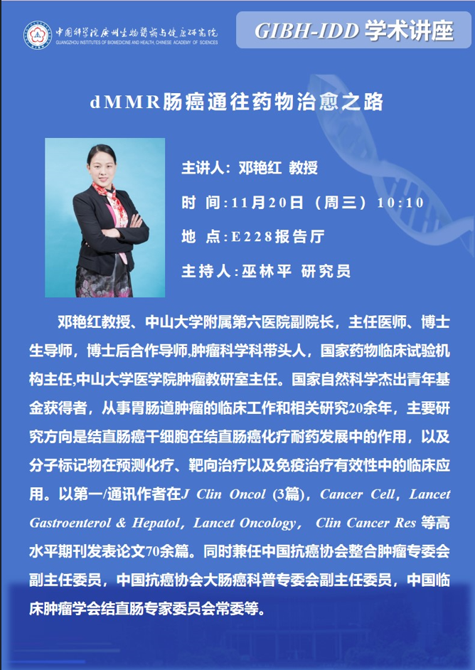 2024年11月20日GIBH-IDD學術(shù)講座:dMMR腸癌通往藥物治愈之路