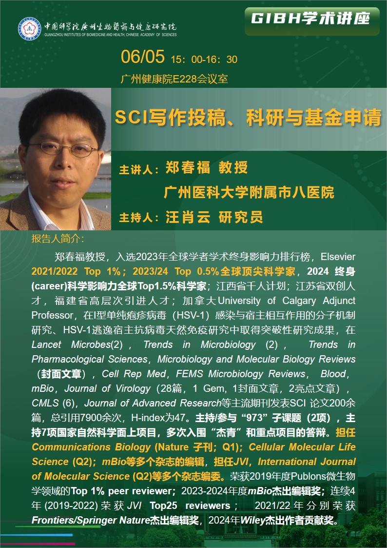 2025年6月5日學(xué)術(shù)講座:SCI寫作投稿、科研與基金申請(qǐng)